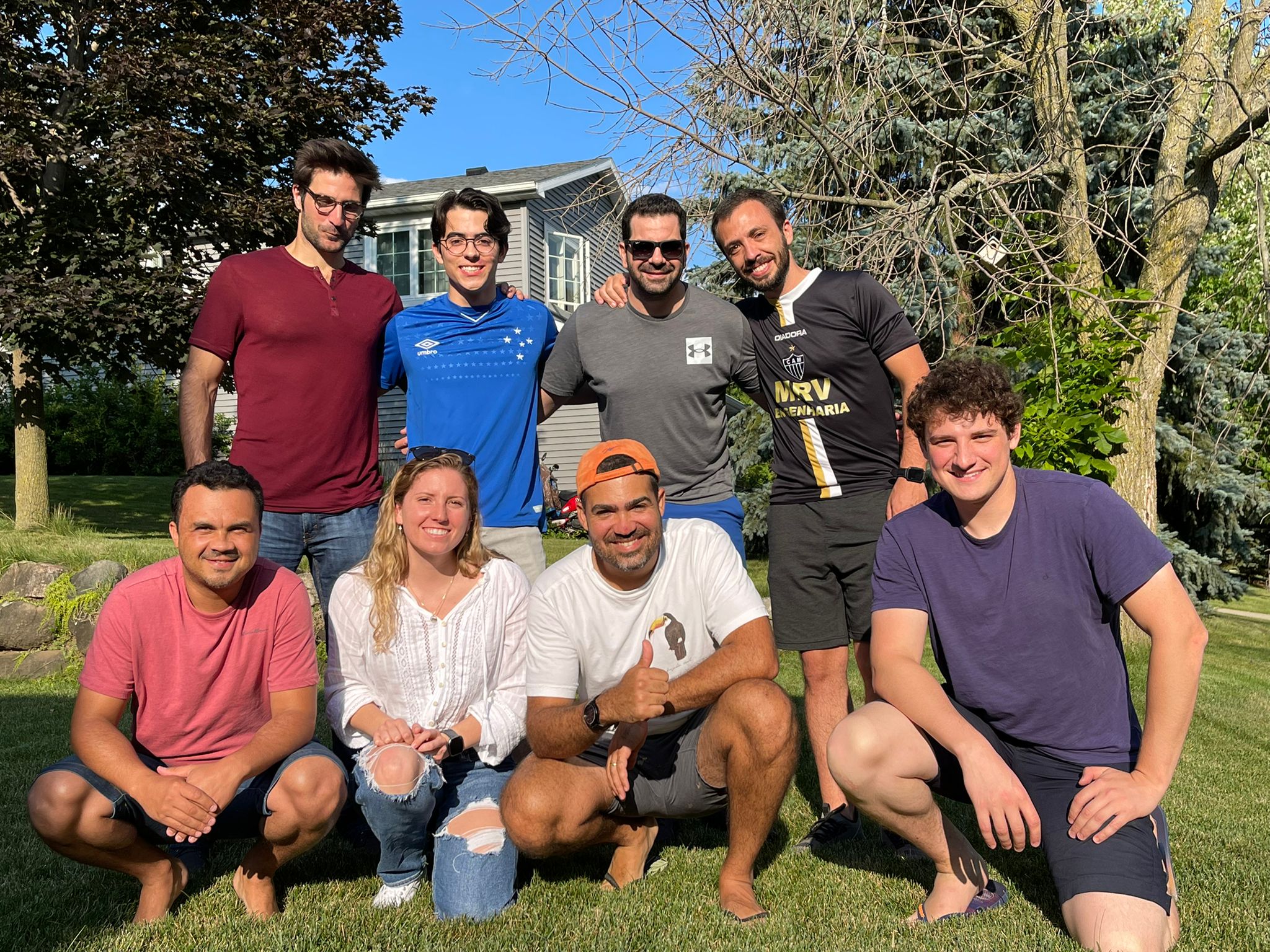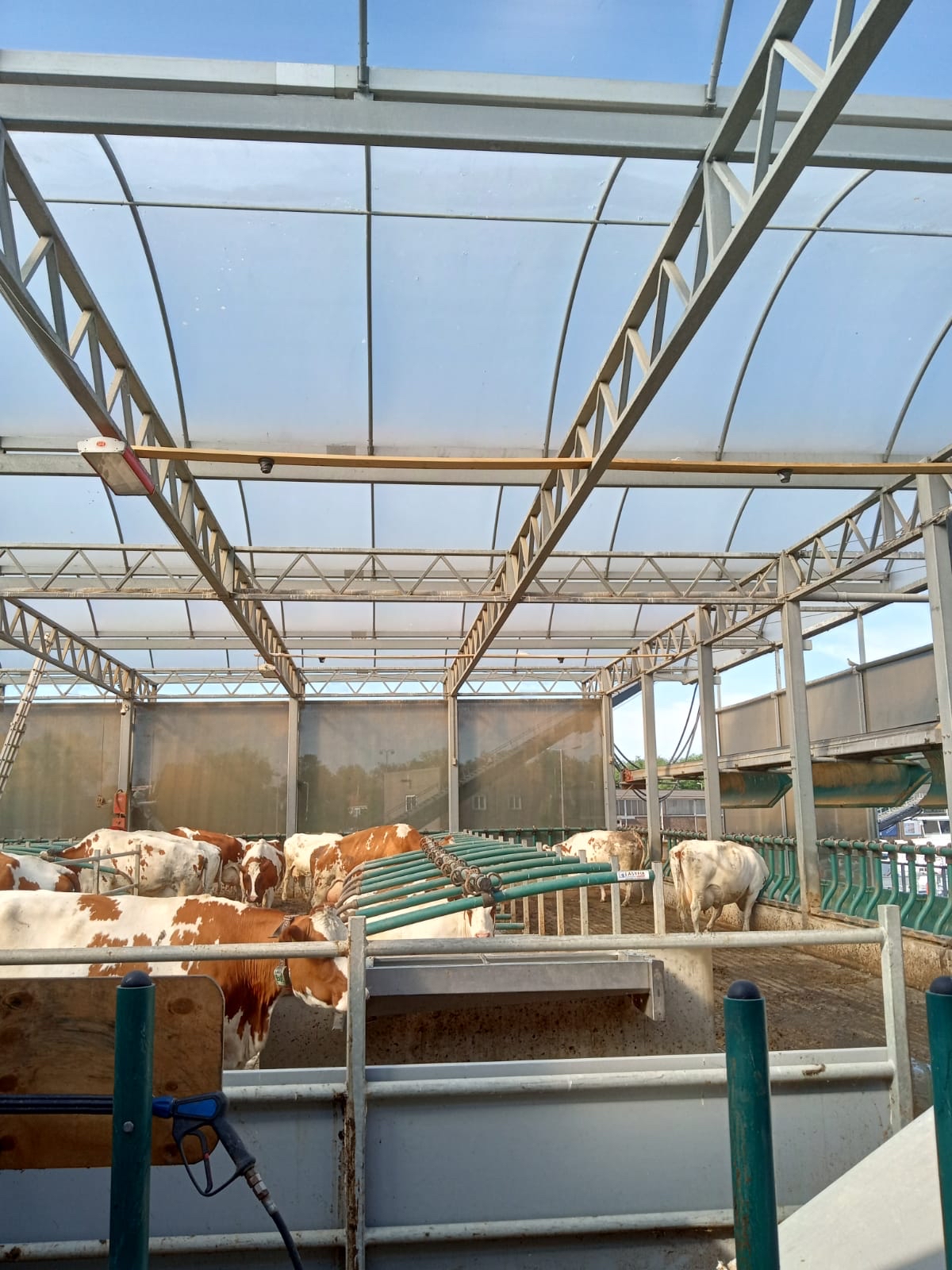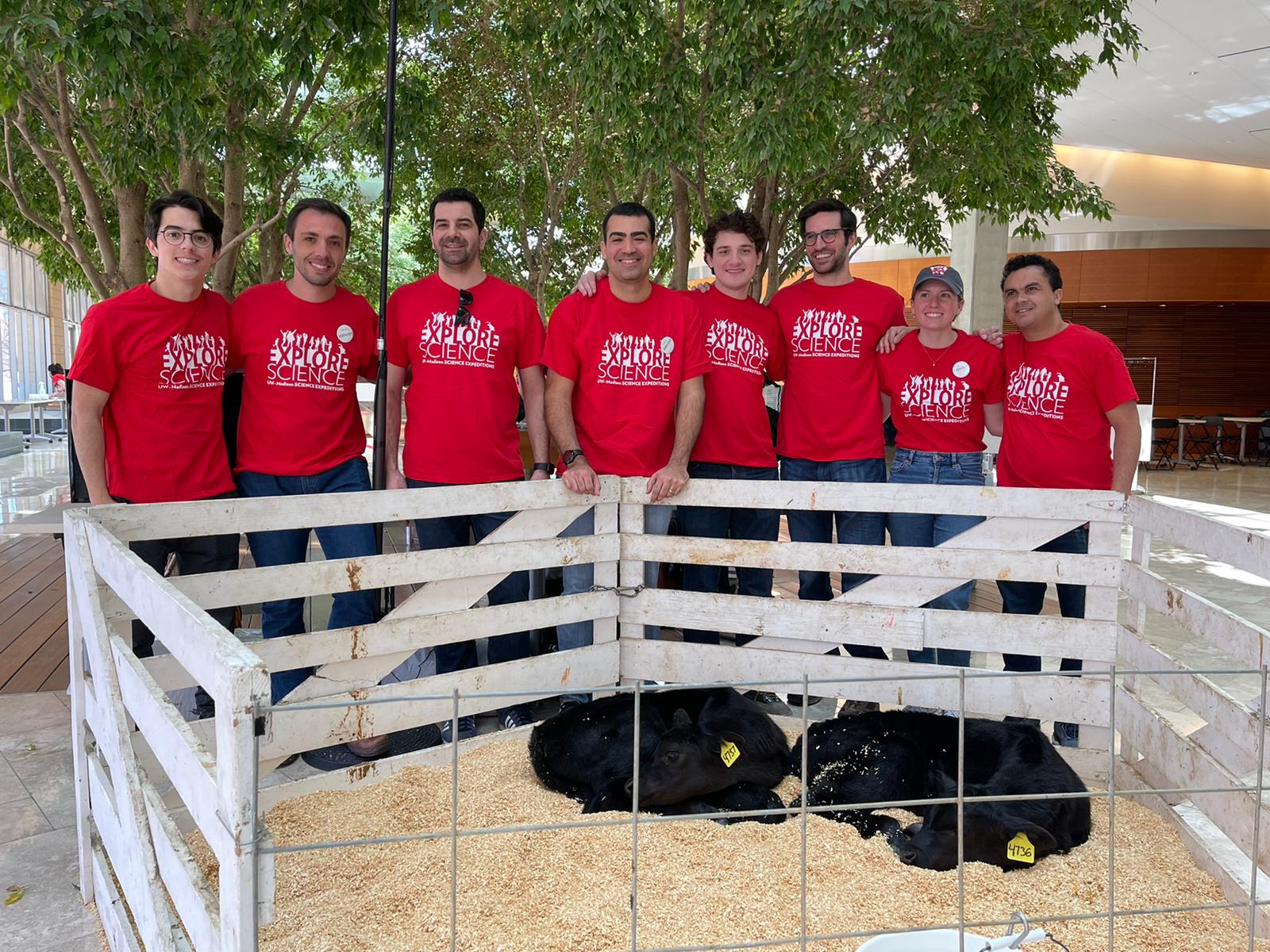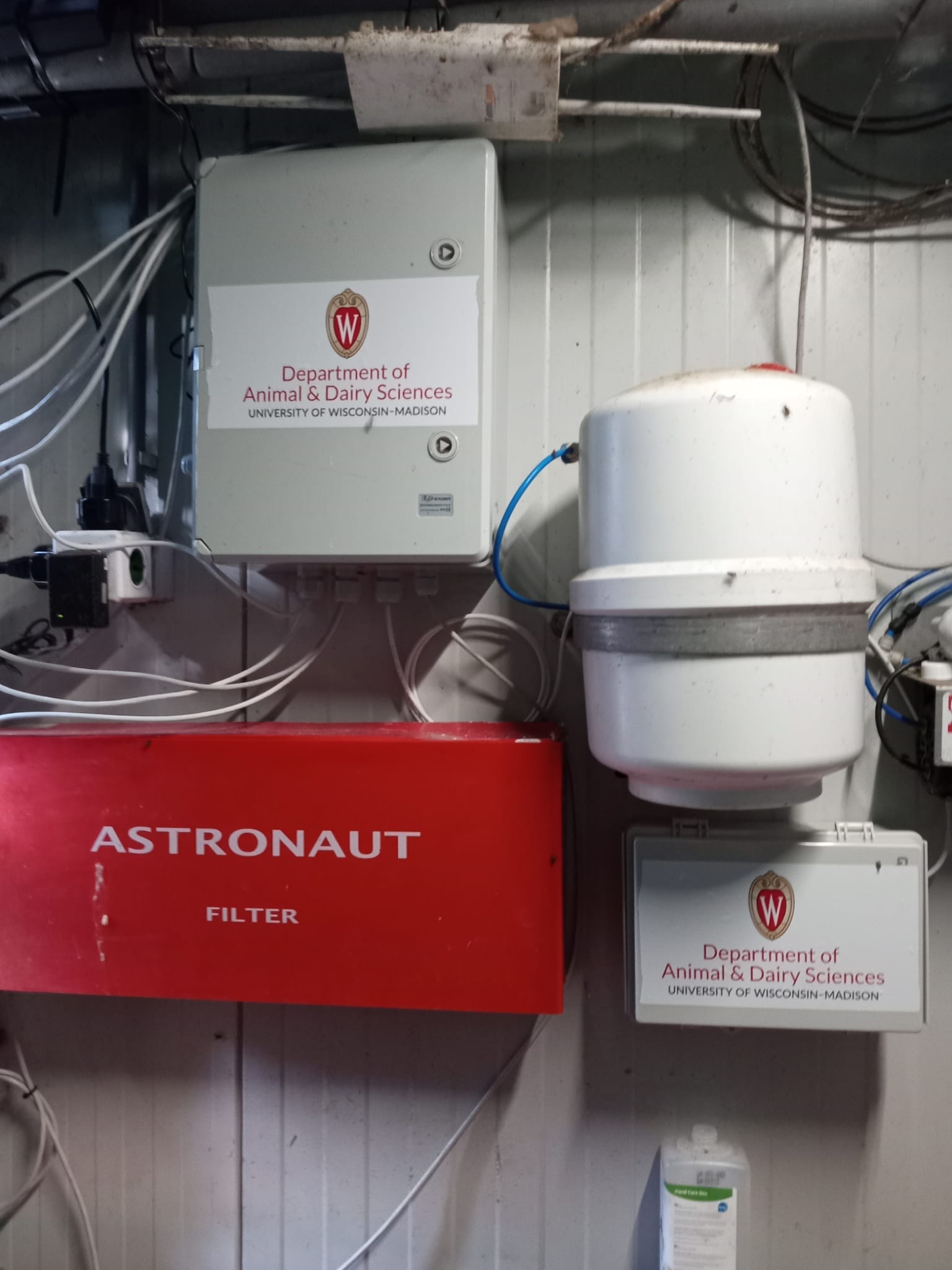 Joao Dorea, assistant professor of dairy science, right, and animal sciences research associate Arthur Fernandes, setup a camera at a calf hutch at Emmons Blaine Dairy Cattle Research Center at Arlington Agricultural Research Station in Arlington, Wis., Thursday, Aug. 8, 2019.